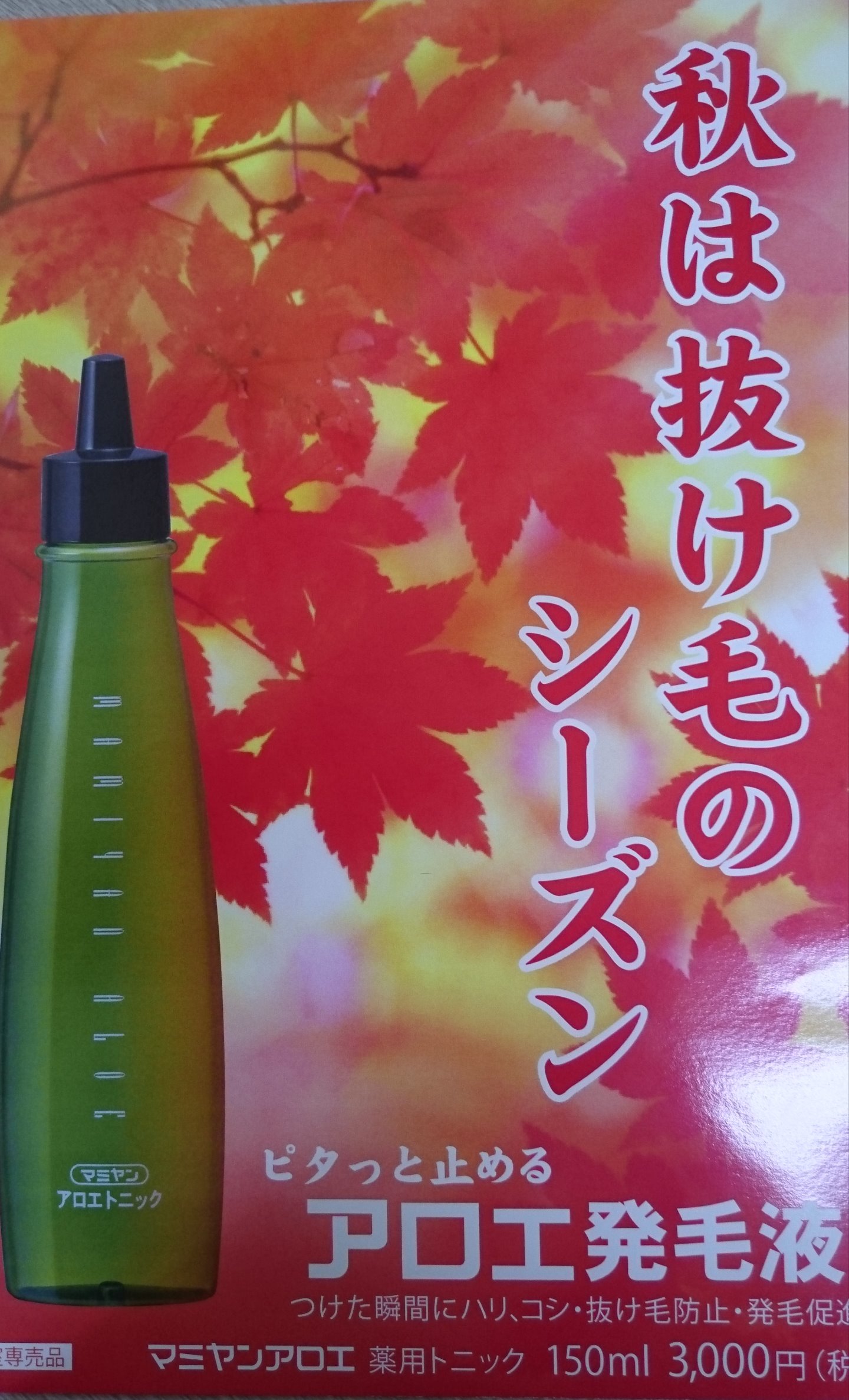 秋は抜け毛の季節!!アロエ原液育毛トニックのご紹介・・・